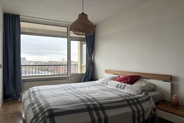 Indeling: Je stapt de lift in in het complex en gaat naar de achtste verdieping waarna je via de balustrade bij de voordeur van de woning komt. Je komt binnen in het entree met een hal met toegang tot alle vertrekken. De zeer ruime woonkamer met toegang tot het balkon is voorzien van grote raampartijen. Het appartement heeft 3 ruime slaapkamers waarvan er 1 toegang biedt tot het balkon. Daarnaast heeft het appartement een apart toilet en douche met een wastafel. Tot slot zit er op de 1e etage een berging voor privé gebruik en is er genoeg parkeergelegenheid langs de straat.