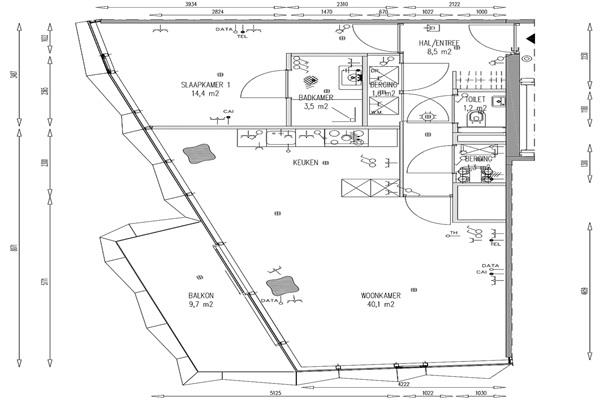 De licht overgoten woonkamer wordt gedomineerd door de grote raampartijen tot aan de grond. De woonkamer is door de verschillende vlinderpilaren speels van indeling. Een grote schuifpui geeft toegang tot het balkon.