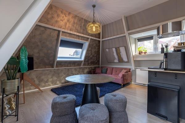 Bij binnenkomst via de entree komt u via een trap op de verdieping. Direct rechts bevindt zich de slaapkamer. De woonkamer heeft een open keuken en biedt toegang tot een balkon. De slaapkamer beschikt over een ensuite badkamer, modern en luxe afgewerkt, met inloopdouche en wastafel. Er is daarnaast een separaat toilet aanwezig.