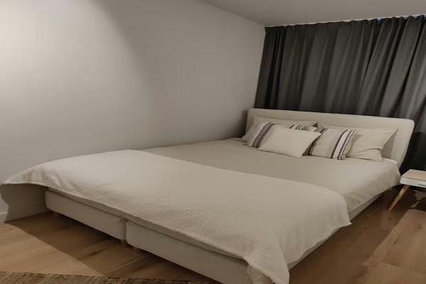 Via de hal komt u in de slaapkamer, voorzien van een comfortabel tweepersoonsbed, twee nachtkastjes en een kledingkast met dubbele deuren. Deze slaapkamer is met alle details gezellig en smaakvol ingericht.