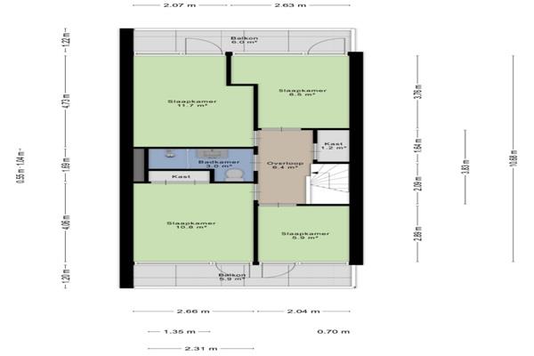 Het appartement beschikt over een lichte woonkamer en moderne keuken. De woning telt 4 slaapkamers en een nette badkamer, uitgerust met onder meer een wastafel en douche.