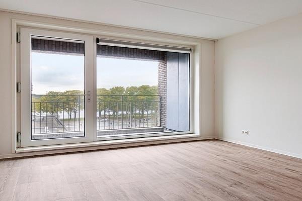 Geniet van een prettig ingedeelde woonkamer met een fijne buitenruimte in de vorm van een loggia van circa 4,4 m². De woonkamer is heerlijk licht dankzij de grote raampartij en beschikt over een comfortabel zitgedeelte en een moderne open hoekkeuken, uitgevoerd in wit Bruynzeel design en voorzien van hoogwaardige Siemens inbouwapparatuur.