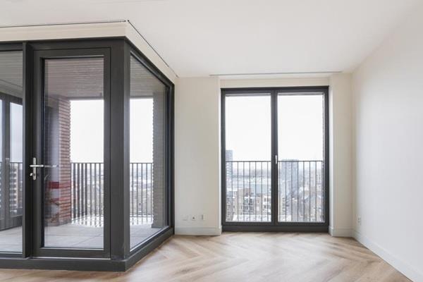 tweekamerappartement op de achtste verdieping met veel lichtinval en een prachtig uitzicht over de skyline van Tilburg. Het balkon is gesitueerd op de westzijde.